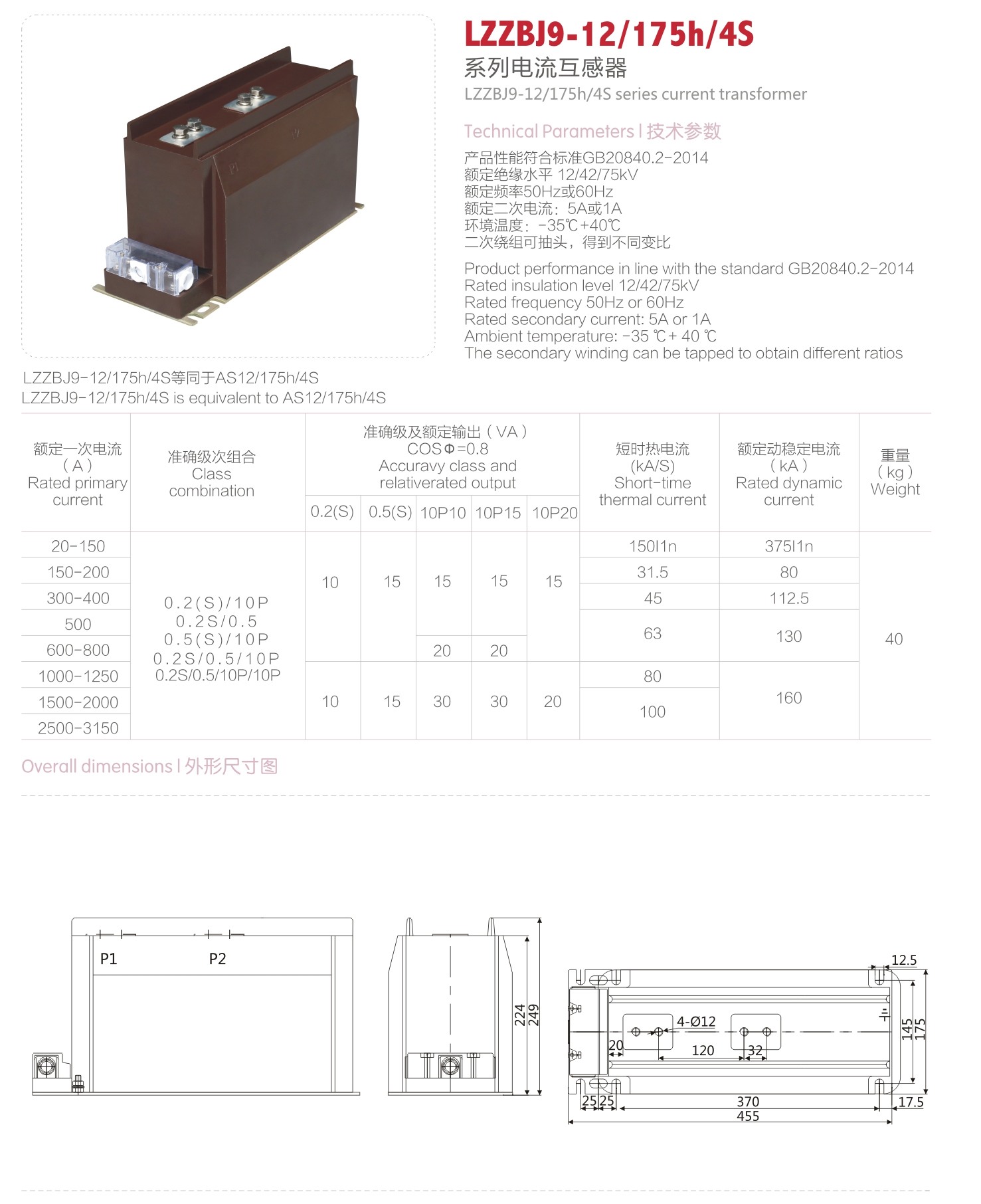 LZZBJ9-12/175h/4S系列电流互感器